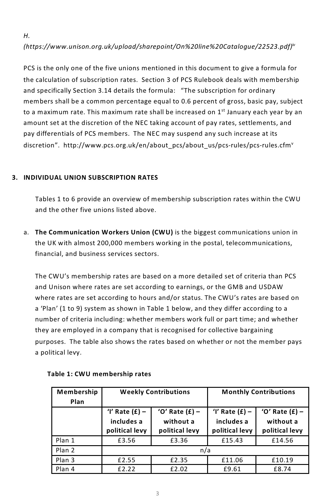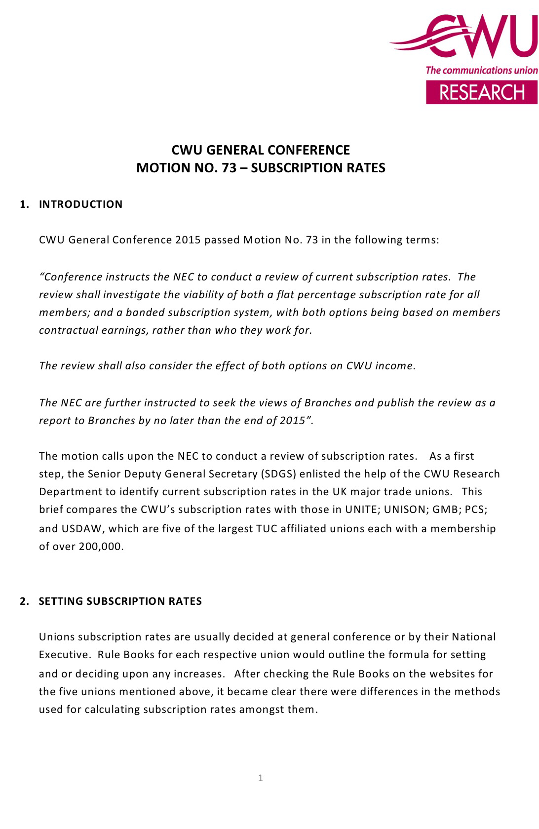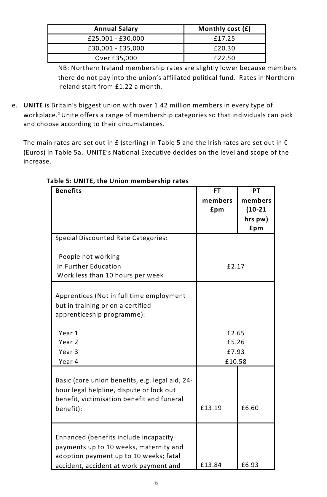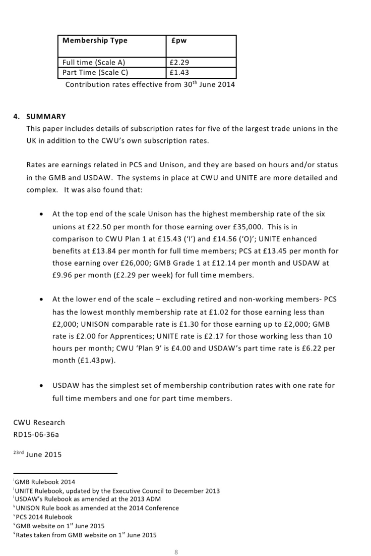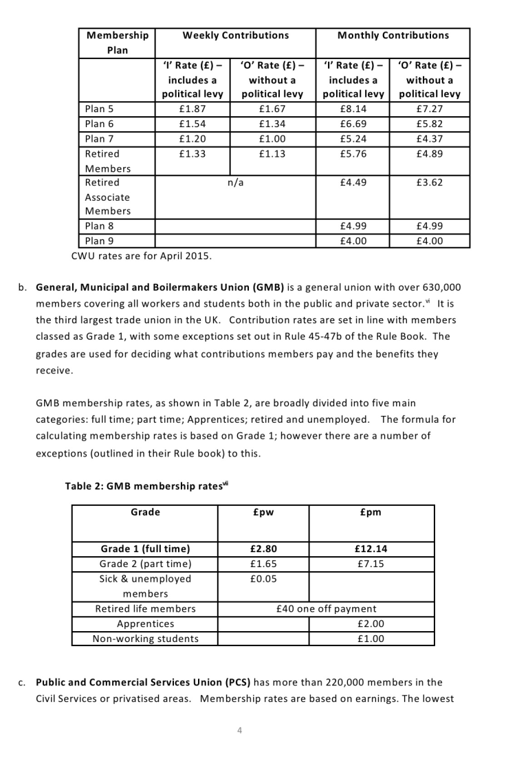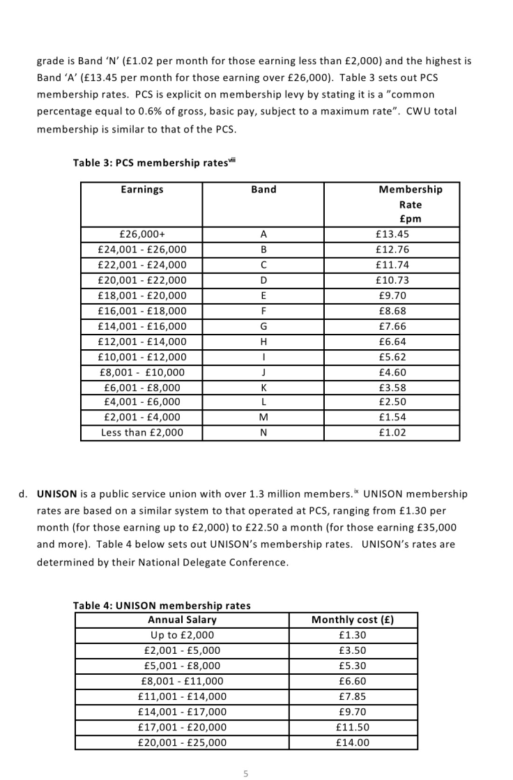 I have attached a copy of the report produced by our Research Department which identifies the current subscription rates in a number of selected trade unions within the UK. The report also describes how those unions agree their subscription increases. As you can see there are a number of varied options including banded scales and flat rate increases, all of which have a number of different plans.