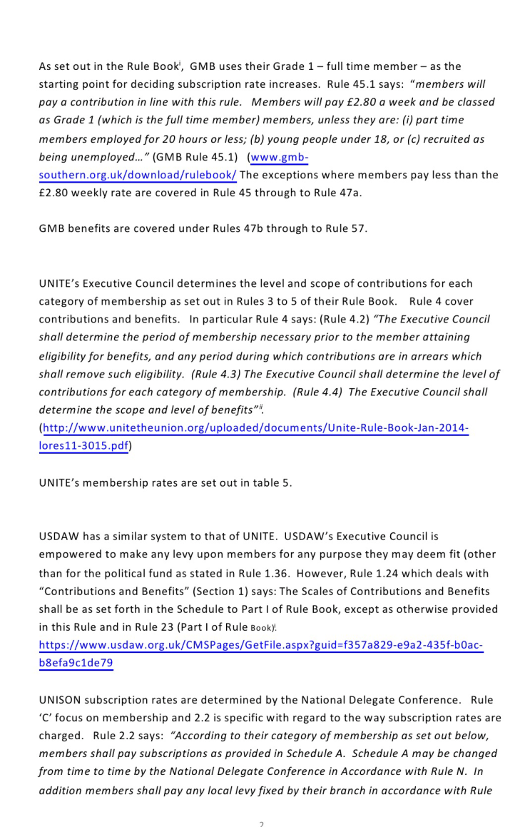 Motion 73 gave a further instruction to seek the views of branches and publish a review as a report to branches by no later than the end of 2015. Therefore would all branches consider the report from the Research Department and send their views to my department by Friday 16th October 2015.