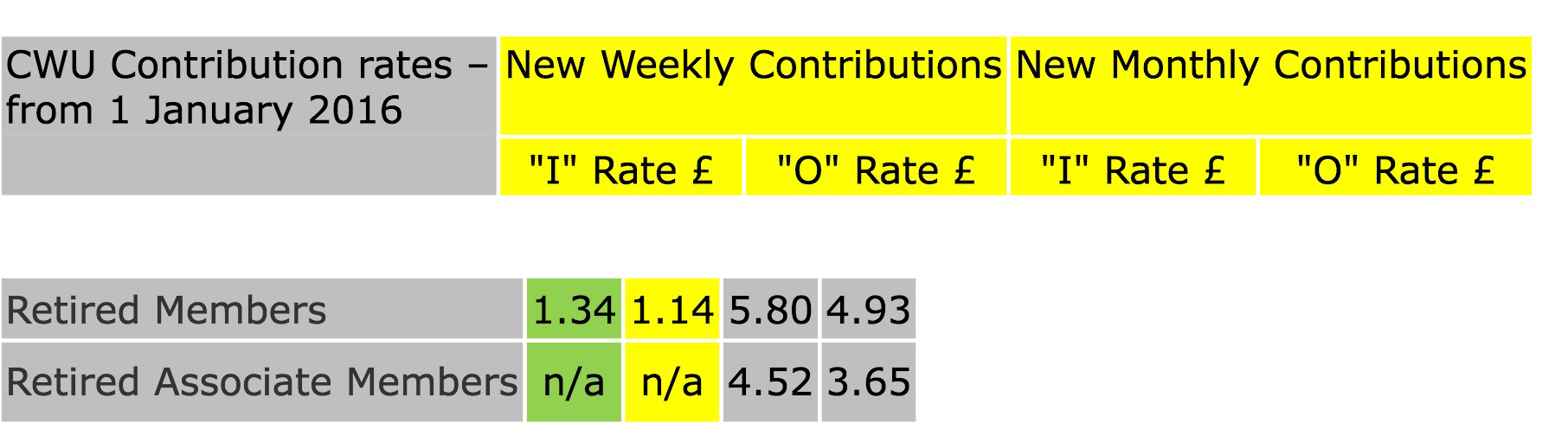 The known rate for RPI is currently 0.8% therefore in accordance with the rules of the union from 1st January 2016 the membership subscription rates for Retired and Retired Associate Members will be as follows;