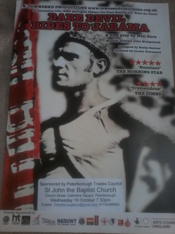 A performance of this play commissioned by the International Brigades Memorial Trust and based around two British men fighting at the battle of Jarama in the Spanish Civil War (1936 / 7) is going to be held in Peterborough. More about the story here: http://www.townsendproductions.org.uk/home