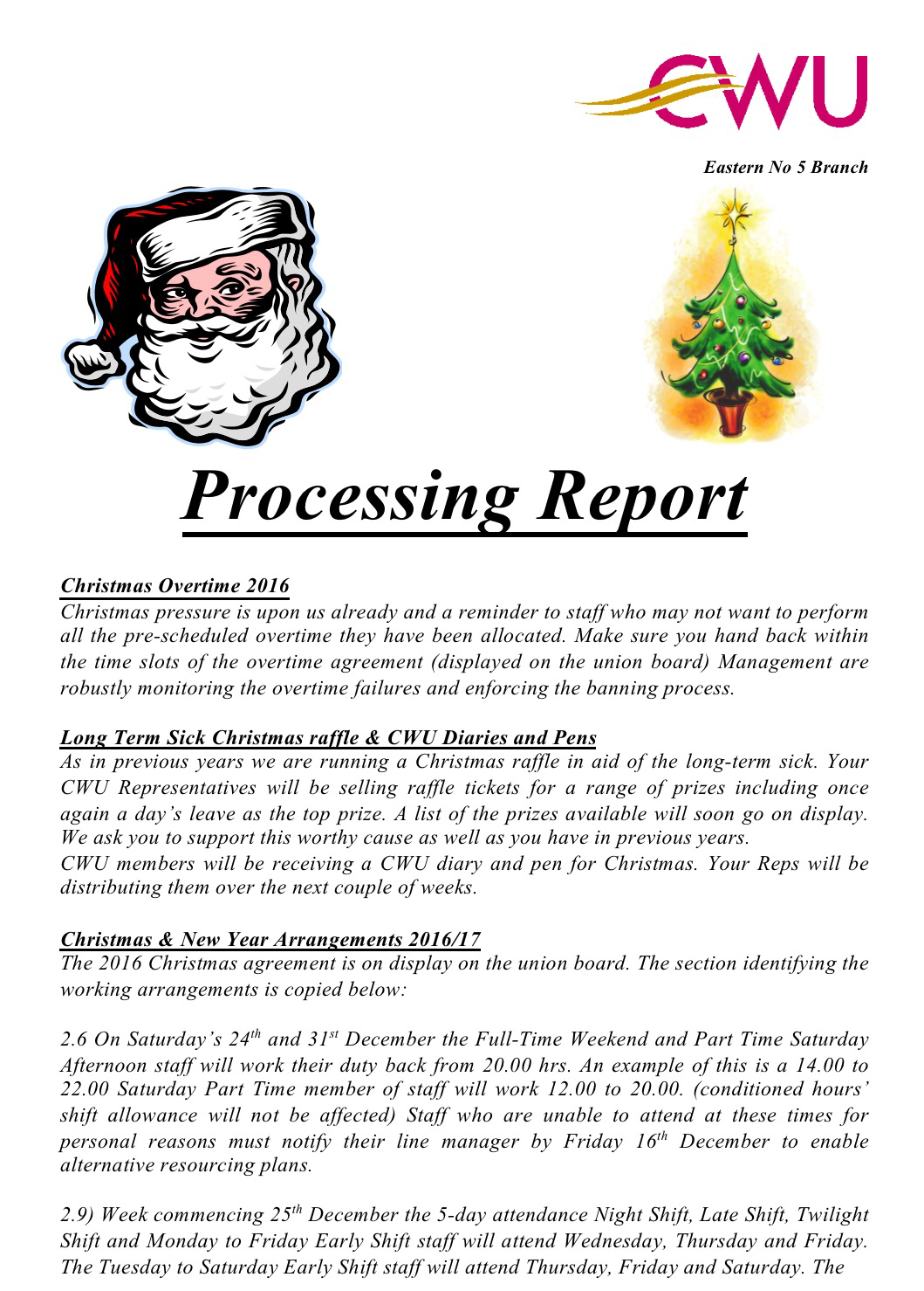 Any enquiries in relation to this LTB should be addressed to Davie Robertson, Assistant Secretary, email: dwyatt@cwu.org or shayman@cwu.org quoting reference number: 233.03