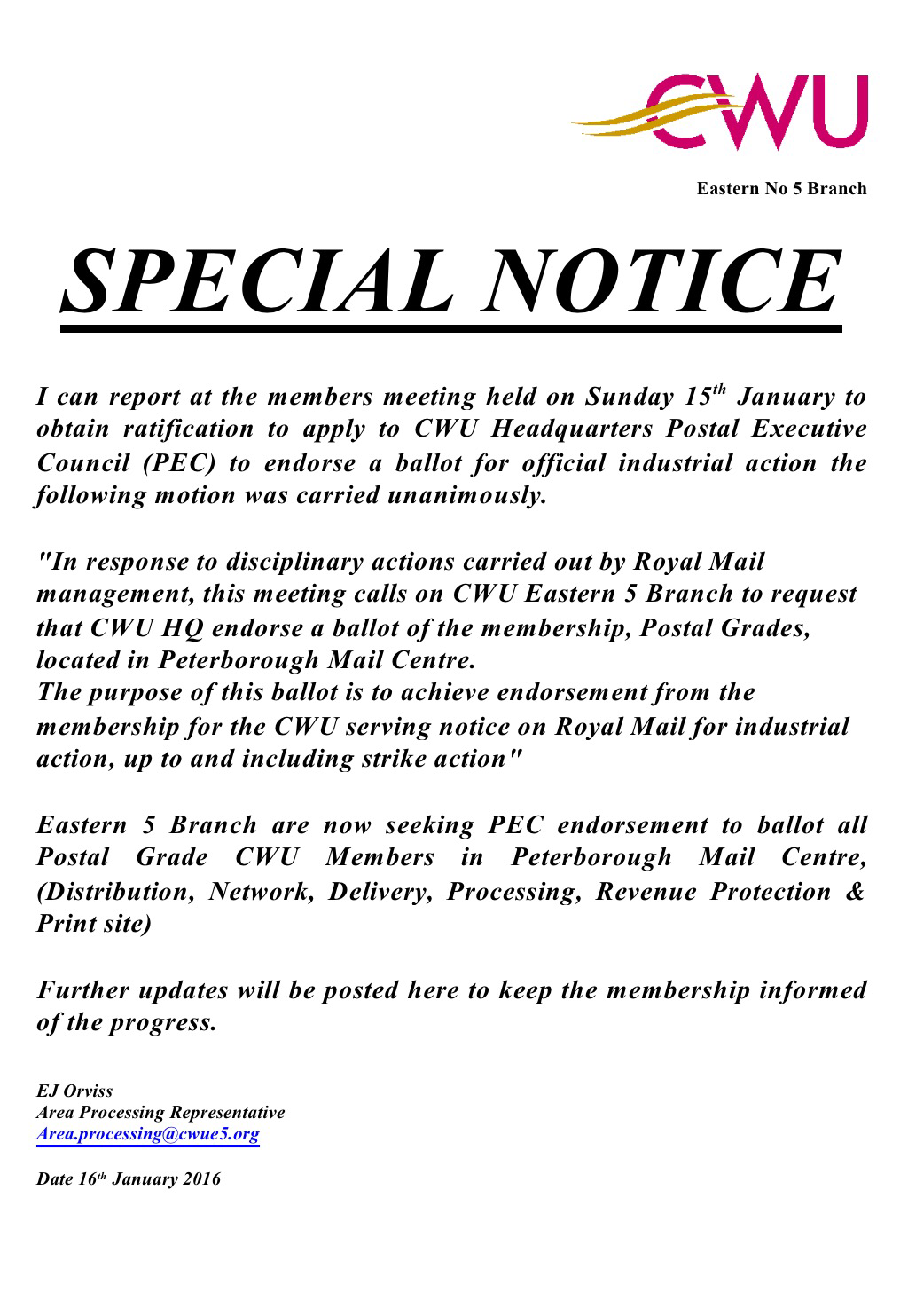 Ø No proposals have been agreed with the CWU and no final decision has been taken. The 60 day consultation process has only just started and talks with the company will continue until we have reached a negotiated settlement. Any moves by the company to executive action will be met with a ballot for industrial action.