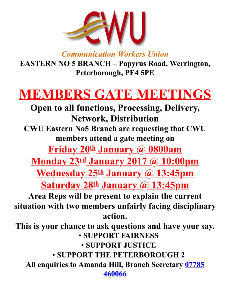 To support the CWU’s campaign, Branches are asked to keep members informed and return pictures of the four ‘Pillars’ poster to help build our social media campaign.