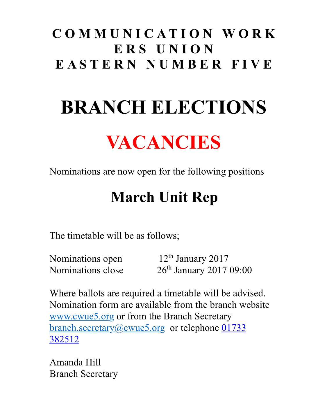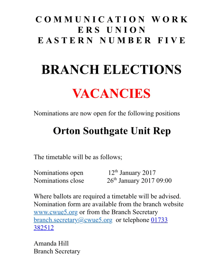 If you have any enquiries on this LTB, these should be addressed to the General Secretary’s Office at gsoffice@cwu.org quoting the reference GS14.12/LTB 747/16.