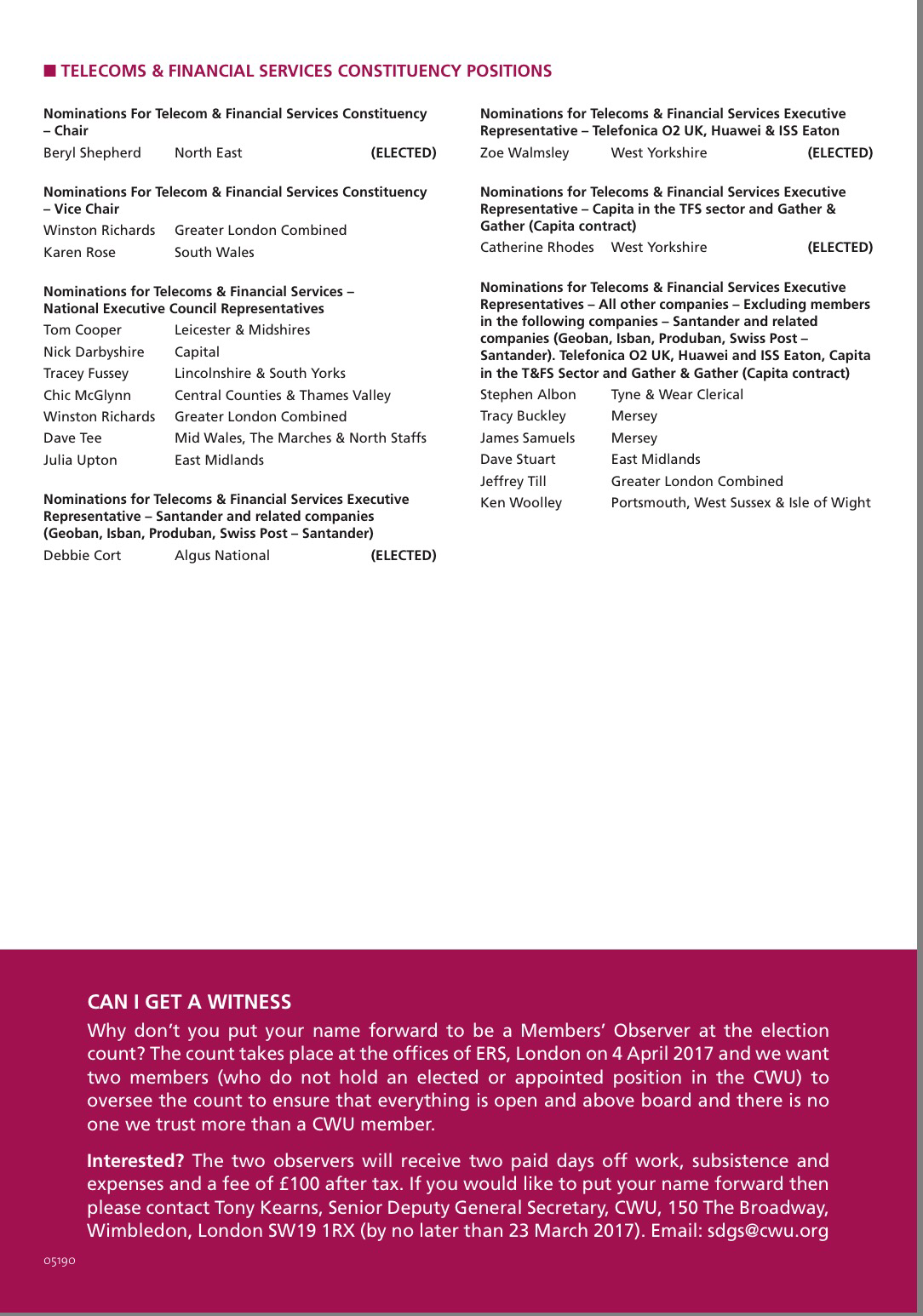Also attached to this LTB is an advanced copy of a leaflet that will be included in the member election packs. This leaflet contains a list of all of the nominations received in the above elections and also provides information on those positions where candidates have been elected unopposed and therefore no ballot is required.