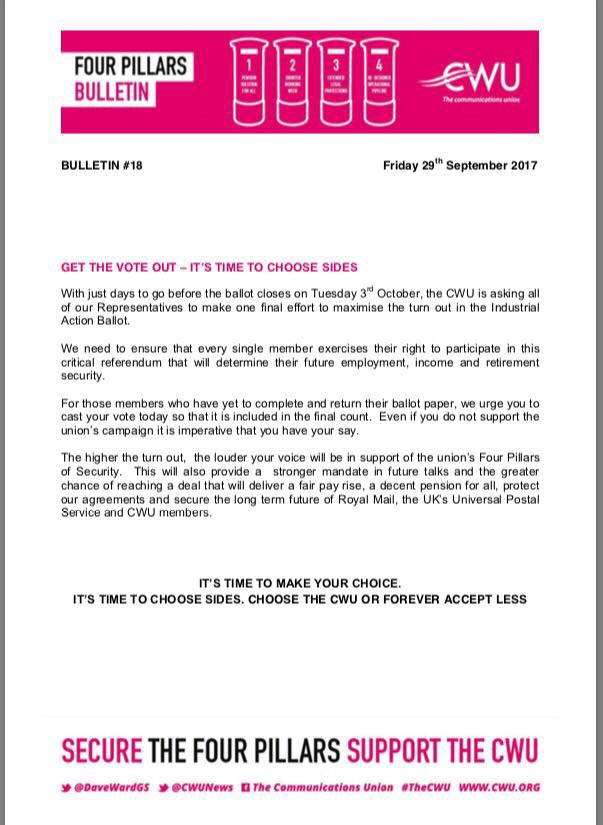 Michelle Simpson, Education and Training Department, CWU, 150 The Broadway, Wimbledon, London, SW19 1RX or email learn@cwu.org