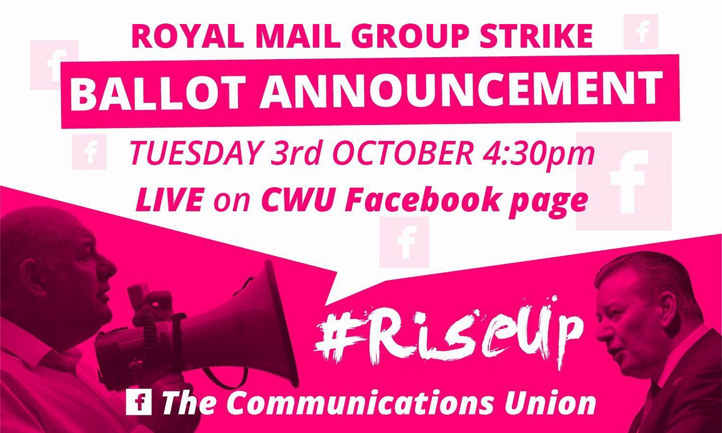 Live Four Pillars ballot result here Tuesday 3rd October 4.30pm https://www.facebook.com/ThecommunicationsUnion/ Share this with your friendsTweet Print (Opens in new window) Print Email a link to a friend (Opens in new window) Email Share on WhatsApp (Opens in new window) WhatsApp Share on Bluesky (Opens in new window) Bluesky Like Loading... Related Leave a comment Cancel reply Δ
