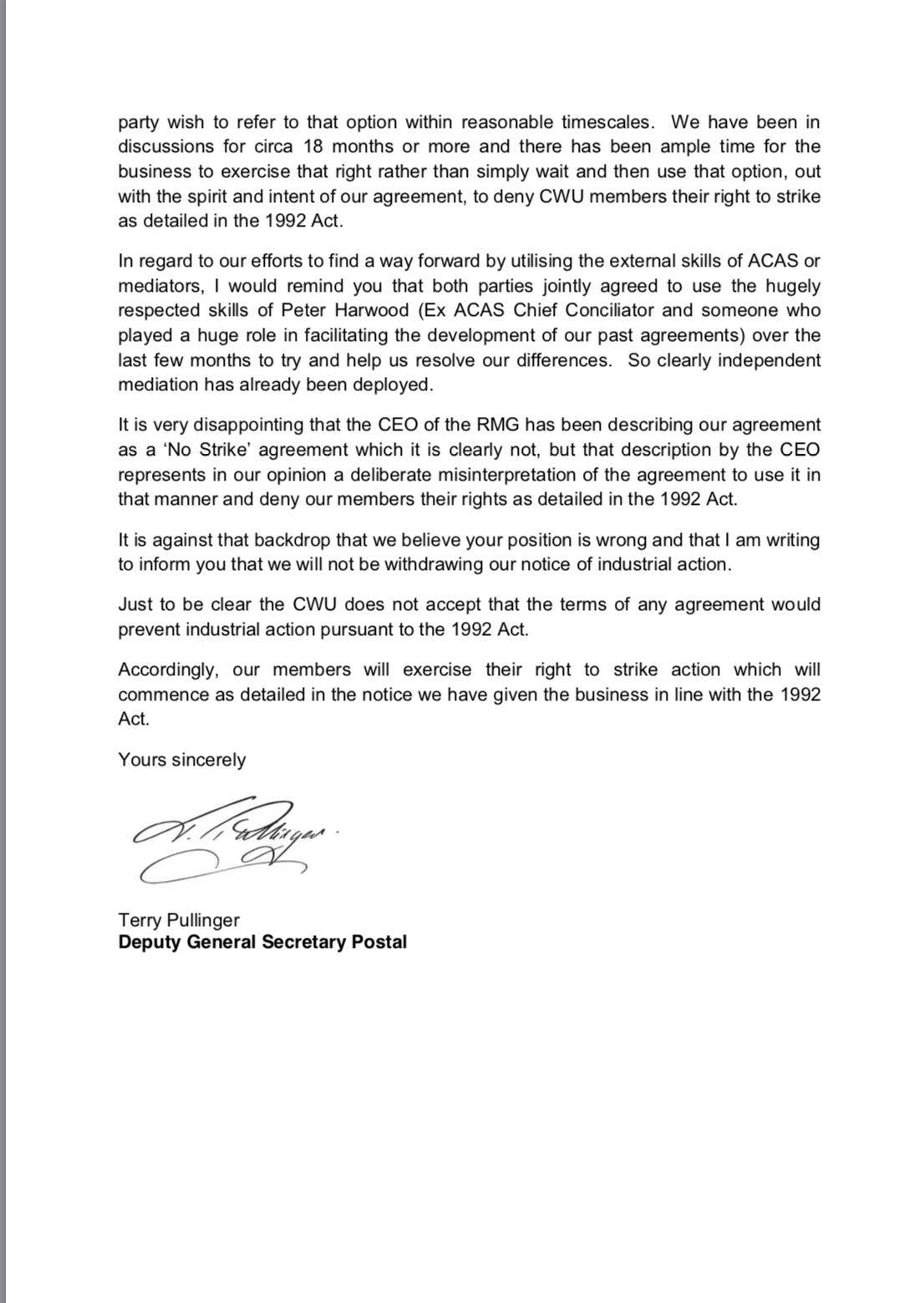 Yours sincerely