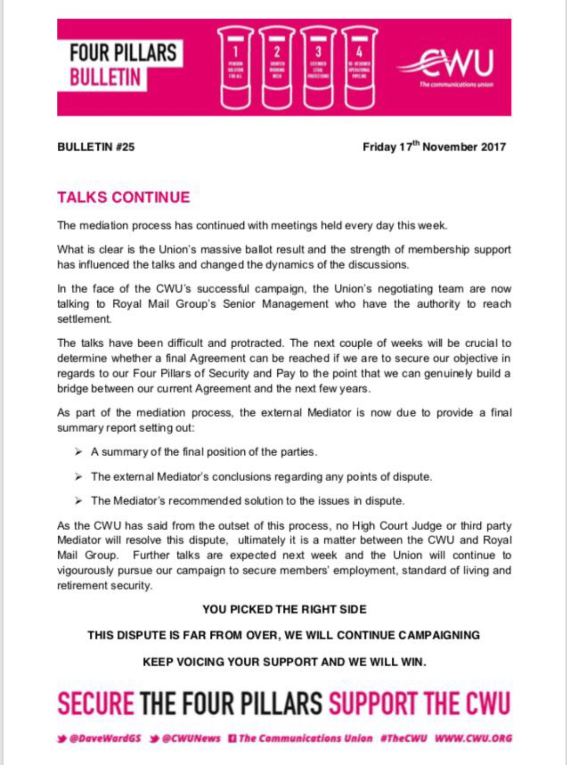 Any enquiries regarding this Letter to Branches should be addressed to the Senior Deputy General Secretary Department on telephone number 020 8971 7237 or email address sdgs@cwu.org.