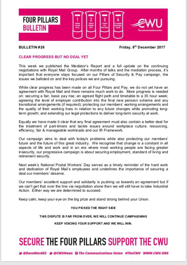 Here is the full mediators report released today (6/12/17) of the Talks between Royal Mail and the CWU