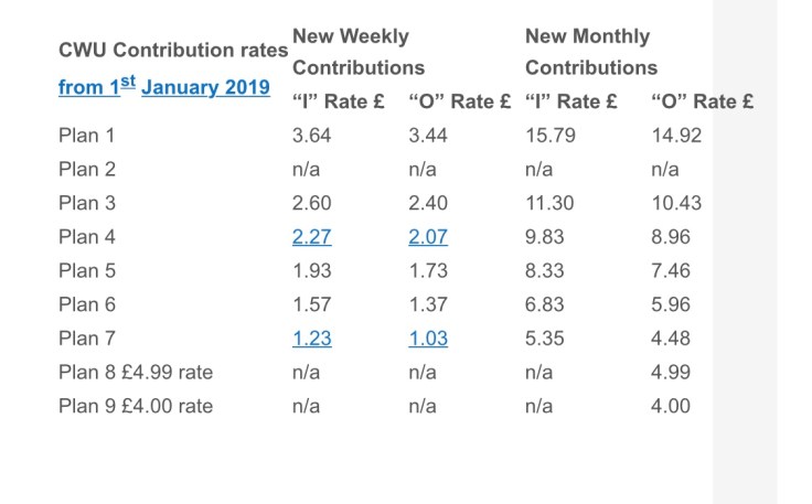 From 1st January 2019, CWU Subscriptions will therefore be as set out below: