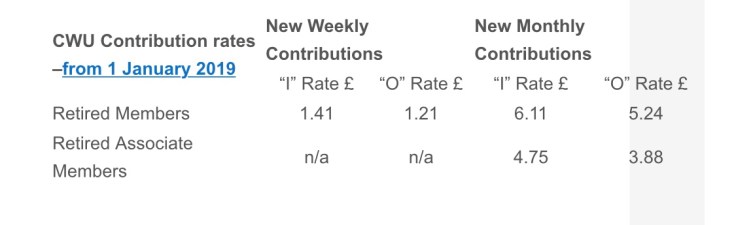 The known rate for CPI is currently 2.4% therefore in accordance with the rules of the union from 1st January 2019 the membership subscription rates for Retired and Retired Associate Members will be as follows: