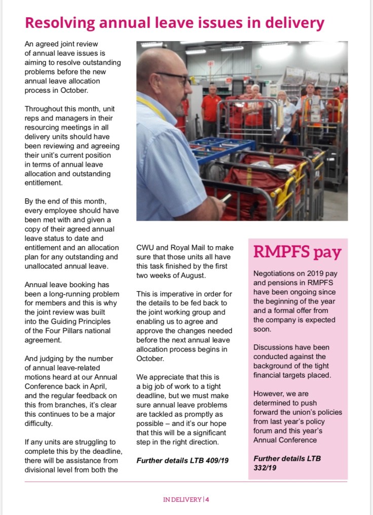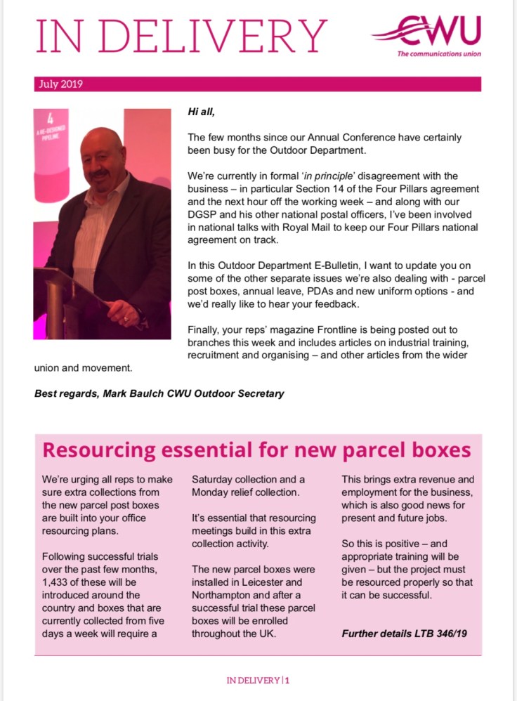 We need Delivery Office Managers and Area Operational Managers working closely with CWU Area Safety Reps and we need a commitment, top down from Royal Mail to put staff first on a health and safety first platform, repeatedly preached by RMG Headquarters, even if it means stopping deliveries, shortening deliveries, stopping absorption and other duty modifications. The message should be, do it, and support the workforce and DOMS in making the right decisions is what I am appealing for.
