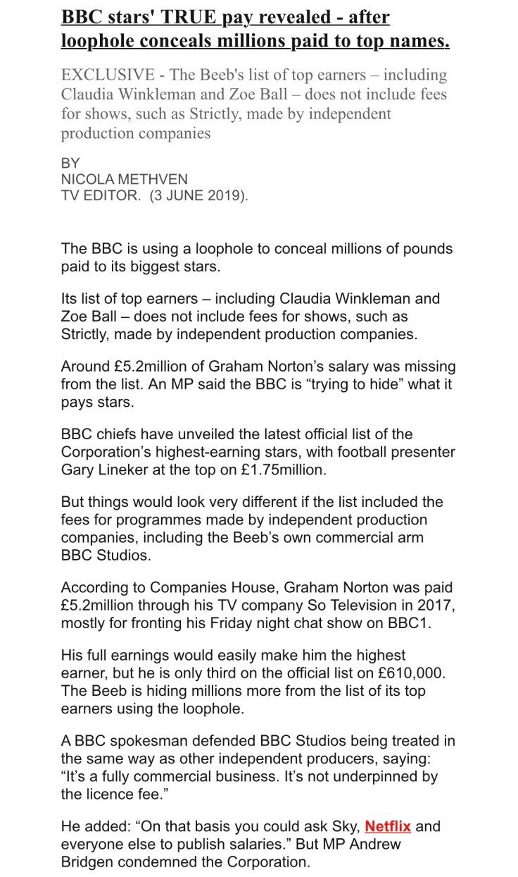 BBC stars’ TRUE pay revealed – after loophole conceals millions paid to top names.