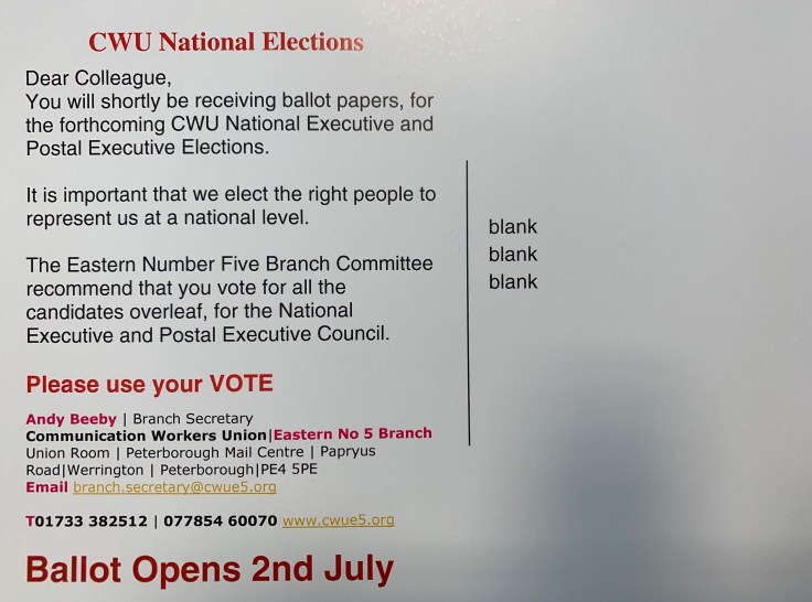 Branches will be aware that it is the policy of the CWU to invite union members to observe the election count at the offices of ERS in London.