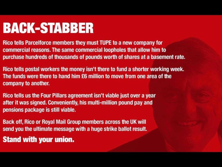 This is a time when all members needs to support the CWU and make sure we send a clear message to Rico Back and the other senior Directors that we are not going to stand by and let him wreck the business and our members terms and conditions in their desire to reward themselves with more shares and bonuses.