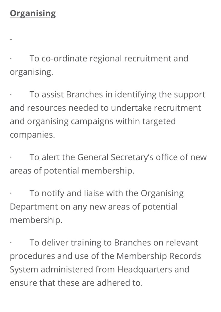 - To support the development and delivery of the union’s Organising and Recruitment Strategy.