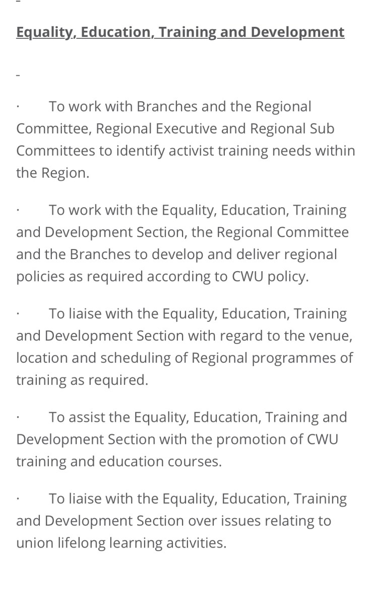 - To support the development of the union’s work within the wider trade union movement, including building stronger links to TUC Regional Structures.