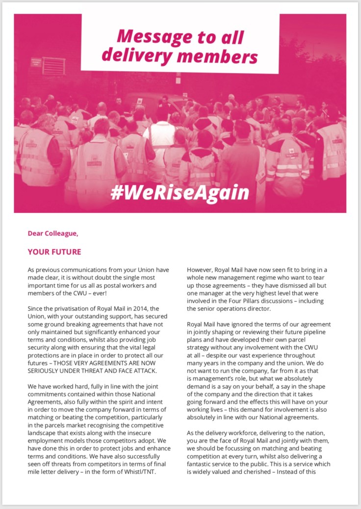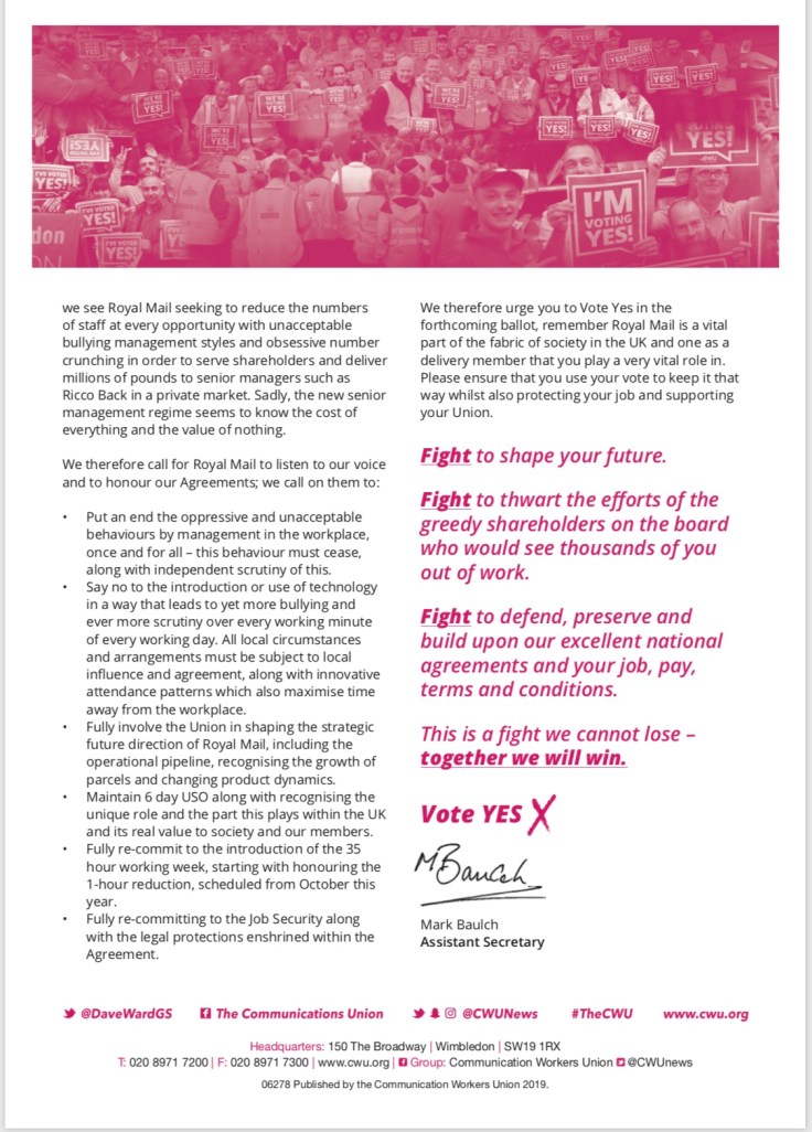 It is crucial all CWU members vote in this fully postal ballot.