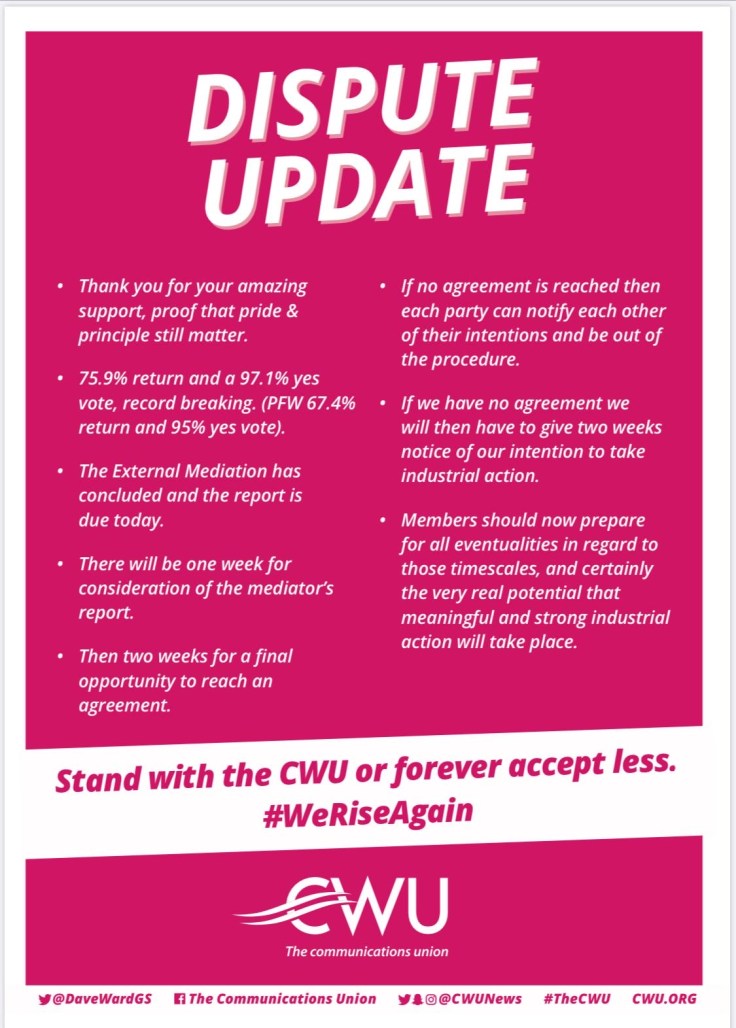 Further to LTB 599/19, please find attached further material that we would ask you to circulate which provides clarity around the timescales following the conclusion of the external mediation. We also believe that this information will enable our members to anticipate all potential events and organise themselves accordingly.