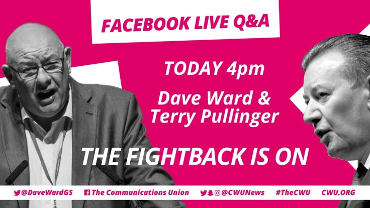 We will be live with the CWU officers from 13:00 on the unions Facebook page.