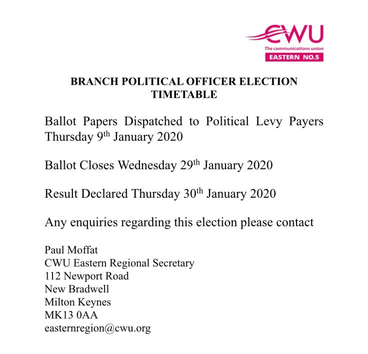 BRANCH POLITICAL OFFICER ELECTION TIMETABLE Share this with your friendsTweet Print (Opens in new window) Print Email a link to a friend (Opens in new window) Email Share on WhatsApp (Opens in new window) WhatsApp Share on Bluesky (Opens in new window) Bluesky Like Loading... Related Leave a comment Cancel reply Δ