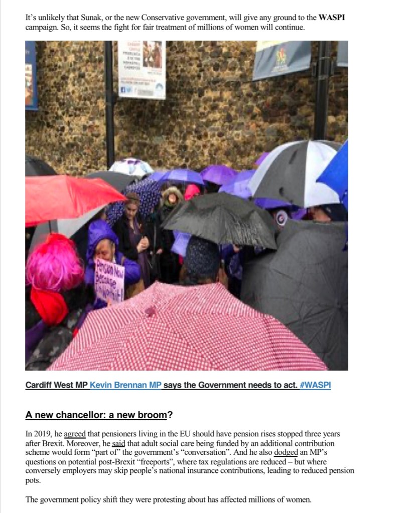 WASPI women have given a stark message to the new chancellor. Share this with your friendsTweet Click to print (Opens in new window) Print Click to email a link to a friend (Opens in new window) Email Click to share on WhatsApp (Opens in new window) WhatsApp Click to share on Bluesky (Opens in new window) Bluesky Like Loading... Related Leave a comment Cancel reply Δ