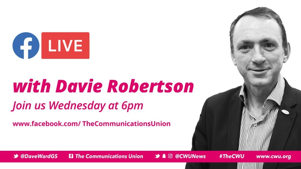 Facebook live for members in parcelforce, mail centres and logistics this Wednesday 4/2/2020 at 6pm