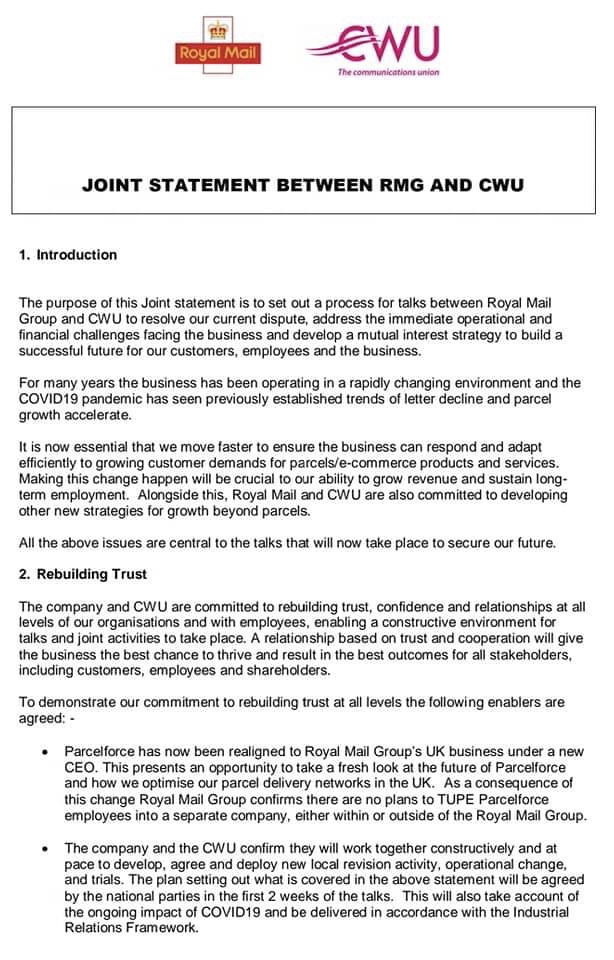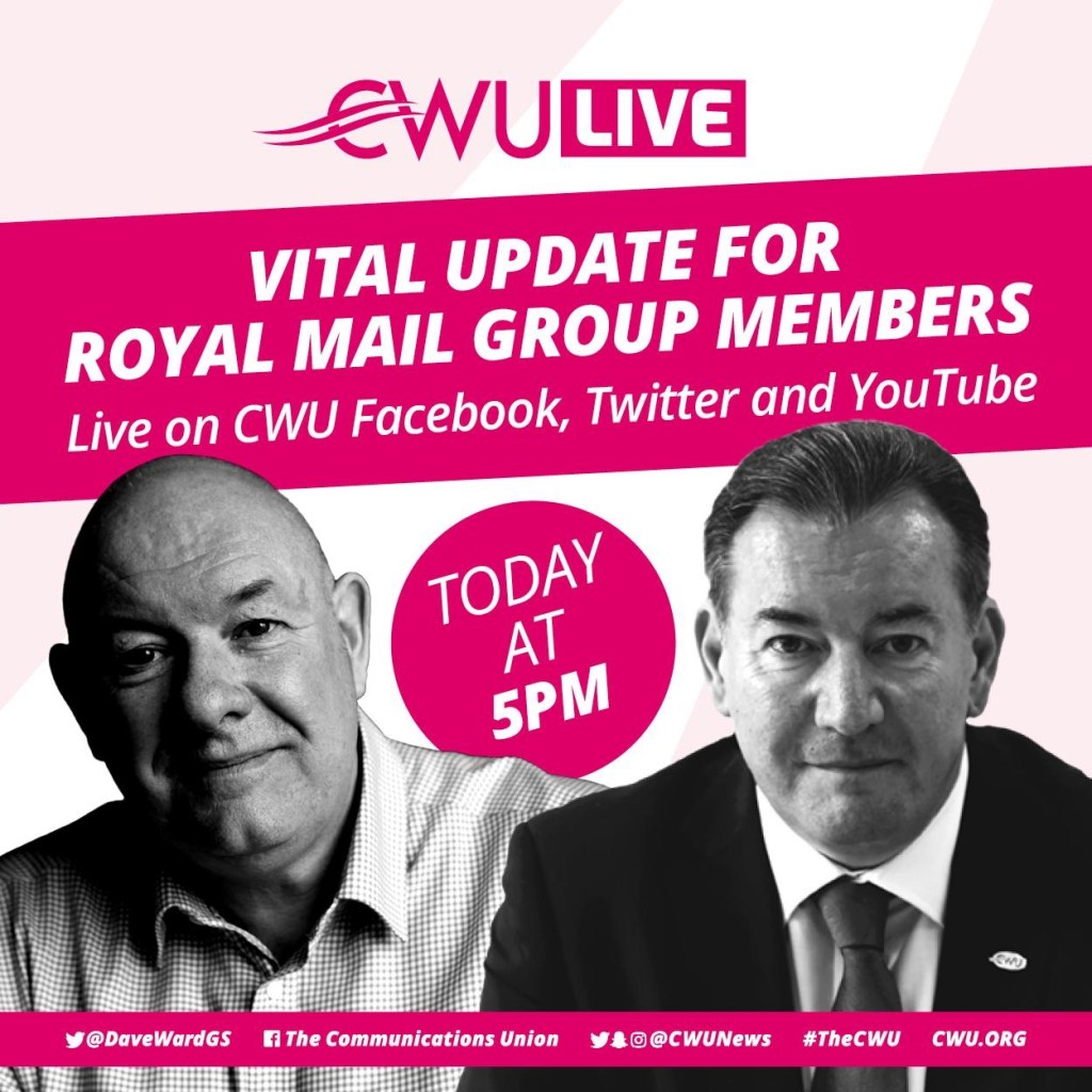 IMPORTANT UPDATE – Joint statement between RMG and CWU Share this with your friendsTweet Print (Opens in new window) Print Email a link to a friend (Opens in new window) Email Share on WhatsApp (Opens in new window) WhatsApp Share on Bluesky (Opens in new window) Bluesky Like Loading... Related Leave a comment Cancel reply Δ