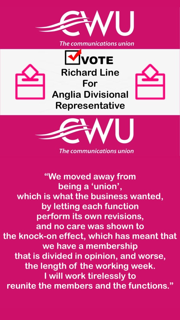 Any enquiries regarding this Letter to Branches should be addressed to the Senior Deputy General Secretary’s Department on telephone number 020 8971 7237, or email address sdgs@cwu.org.