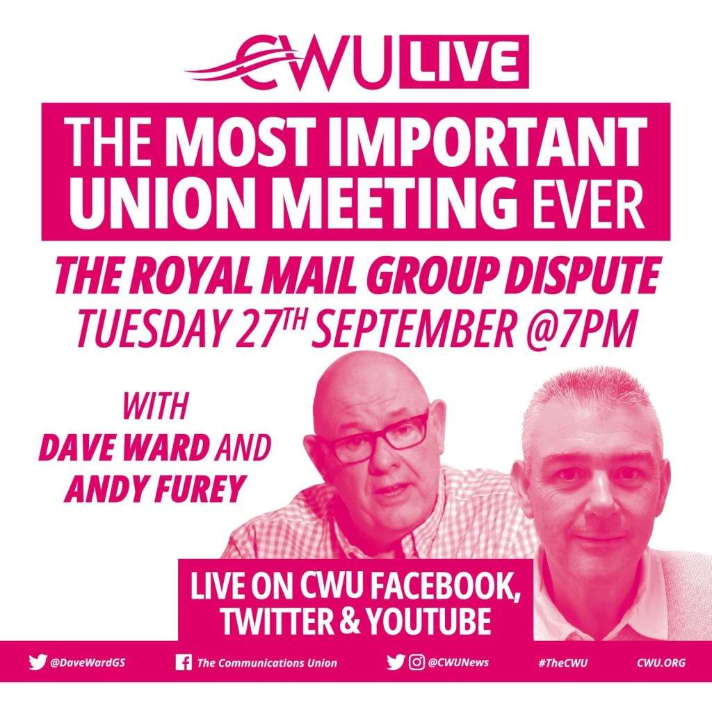 It should also be noted that only last Thursday 22nd September, Royal Mail Group served notice on the Union to cease a number of major agreements, including legal protections, which was extremely provocative.