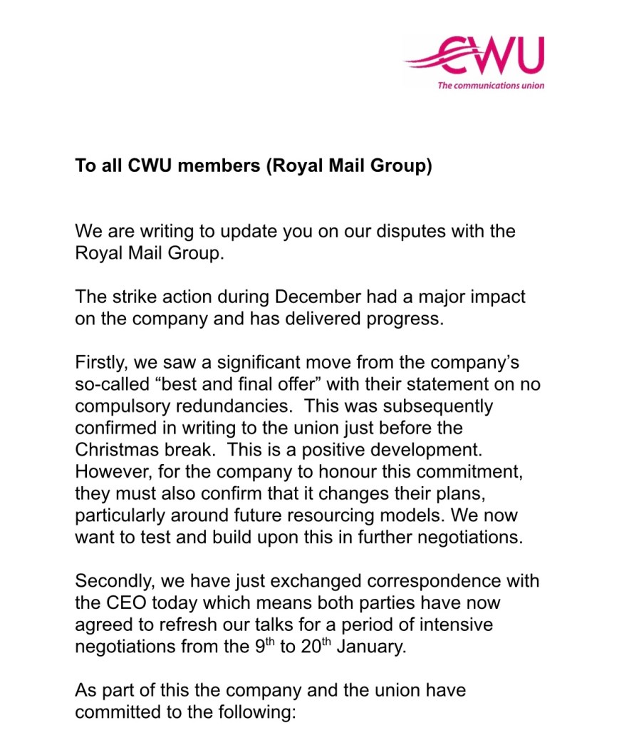 To all CWU members (Royal Mail Group) 6/1/23 Share this with your friendsTweet Print (Opens in new window) Print Email a link to a friend (Opens in new window) Email Share on WhatsApp (Opens in new window) WhatsApp Share on Bluesky (Opens in new window) Bluesky Like Loading... Related Leave a comment Cancel reply Δ
