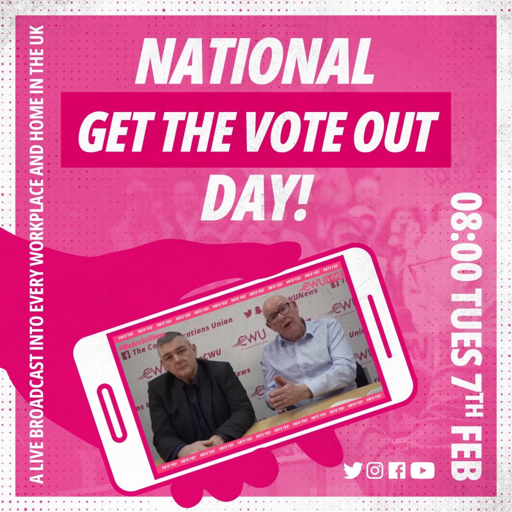 Finally, Branches must convey the content of this LTB to all workplaces and encourage members to join our CWU Live session scheduled for 6pm tomorrow. This will give us an opportunity to provide a full update on recent talks, and the need to do everything possible to maximise the turnout and Yes vote in the re-ballot.