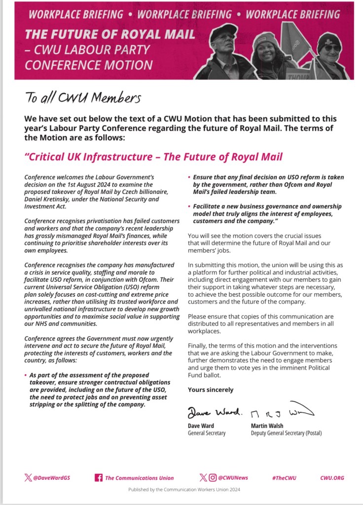 Calls for a Carbon Border Adjustment Mechanism that supports the decarbonisation of domestic steel production, whilst protecting the competitiveness and sustainability of the industry.CommunityS22 Takeover of Royal MailSupports postal workers in securing comprehensive protections in the takeover of Royal Mail, including protections against job losses and in their calls for a new ownership and governance model.CWU