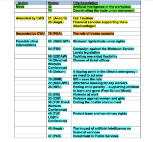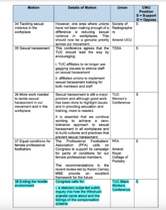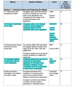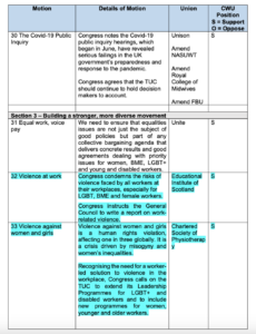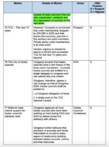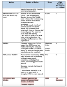 All unions were entitled to submit two motions to the agenda. The CWU National Executive Council agreed the following motions:-