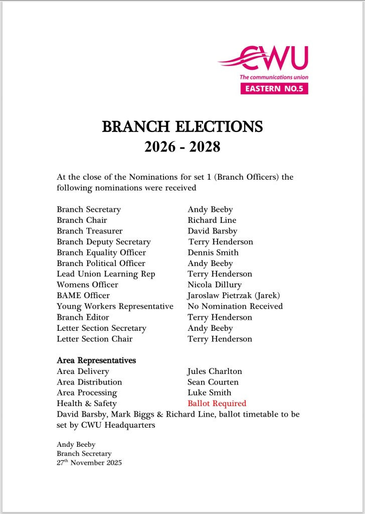 BRANCH ELECTIONS 2026 – 2028 Set One Results 27/11/2025 Set Two Nominations closes 2 weeks after the Set One Elections results have been announced. Share this with your friendsTweet Click to print (Opens in new window) Print Click to email a link to a friend (Opens in new window) Email Click to share on WhatsApp (Opens in new window) WhatsApp Click to share on Bluesky (Opens in new window) Bluesky Like Loading... Related Leave a comment Cancel reply Δ