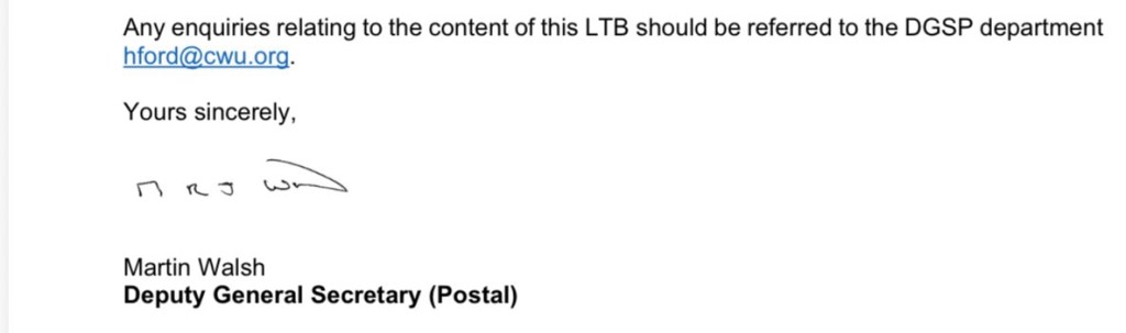 Colleagues will recall that back in March 2025 Royal Mail stepped in and took over all