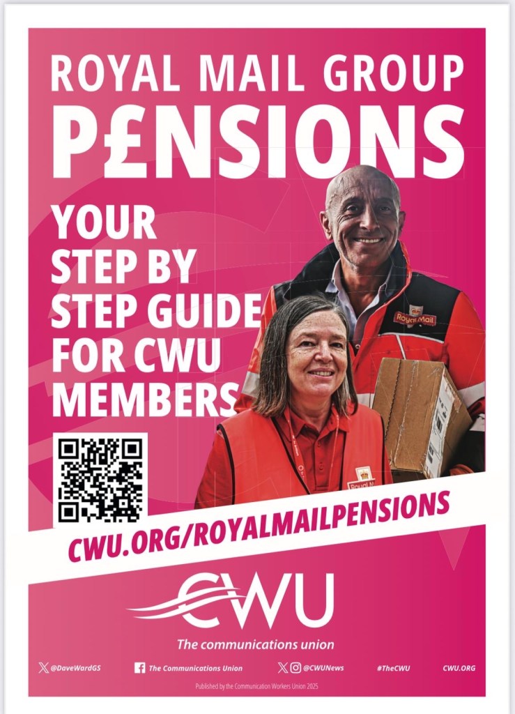Please see the link below to a new CWU page that helps you understand your Royal Mail pensions. You can use the tools provided to find out which pension plans you belong to and a summary of all Royal Mail pensions, past and present – to help you get to grips with which Royal Mail pension scheme you’re likely to be a member of. Please share this link with your Royal Mail colleagues. CWU Education Understanding your Royal Mail pensions https://education.cwu.org/course/pensions/